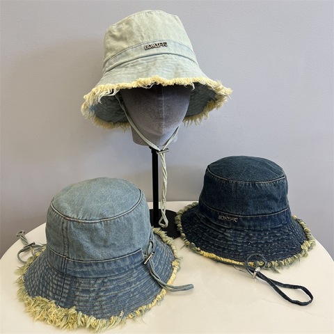 Nouveau style chapeau de pêcheur en denim lavé pour hommes et femmes couple avec cordon de serrage externe chapeau de protection solaire à la mode