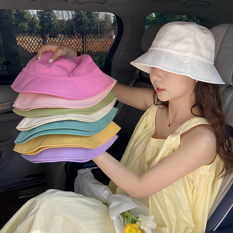 Nouveau chapeau de seau de protection solaire de couleur unie de couleur bonbon chapeau de pêcheur de parasol de tempérament de style mince peut être personnalisé