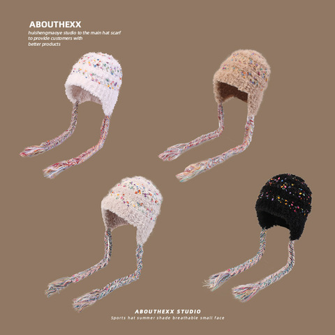 Berretto di nuovo colore cappello unisex in maglia di peluche autunno e inverno protezione per le orecchie calda nappina lana