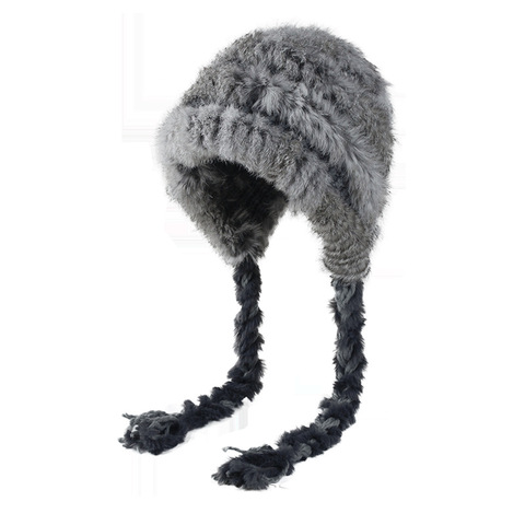 Cappello con paraorecchie in maglia di pelliccia di coniglio autunno e inverno cappello di pelliccia caldo da donna cappello lavorato a maglia a prova di freddo da esterno