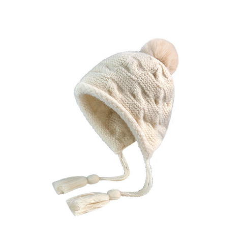 Autunno e inverno caldo cappello paraorecchie in maglia con grande circonferenza della testa e nappe cappello di lana, alla moda e versatile